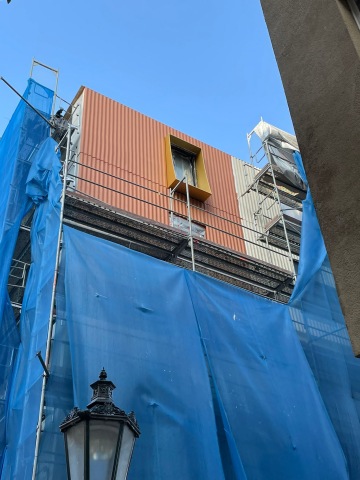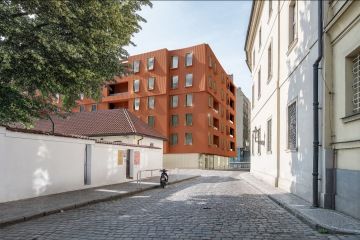 Společně se zástupci odboru památkové péče jsme se shodli na finální barevnosti fasády našeho projektu Rezidence U Milosrdných, který stavíme vedle Anežského kláštera. Abychom vybrali vhodný odstín, provedli jsme přímo na místě vzorování. Natřeli jsme část fasády a sledovali, jak barevně zapadla do střešní krajiny okolních historických budov. A byla to trefa do červeného! Jediná novostavba v historickém centru Prahy tak brzo získá finální podobu.