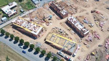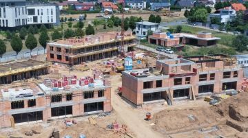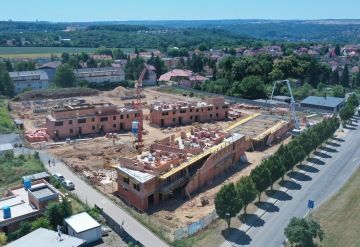 U dvou bytových domů se dokončuje hrubá stavba, na třetím pokračuje zdění druhého nadzemního podlaží.