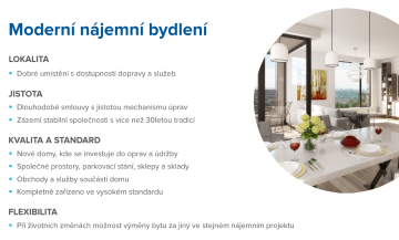 Průzkum CREDITAS Real Estate zaměřený na nájemní bydlení ukázal, že 82 % Čechů žijících v nájmu v něm plánuje zůstat dlouhodobě, z toho necelá polovina trvale. Nejdůležitějším parametrem při výběru nájemního bytu je jednoznačně cena, následuje lokalita. Hlavně pro mladší lidi s vyšším vzděláním a obyvatele Prahy je důležité, aby byl byt částečně nebo plně vybavený. Většinu nájemního trhu tvoří soukromé pronájmy, zastoupení institucionálních nájmů je v Česku zatím malé. Právě to se ale začíná měnit. Jedním z velkých poskytovatelů nájemního bydlení bude i CREDITAS Real Estate ze skupiny CREDITAS.