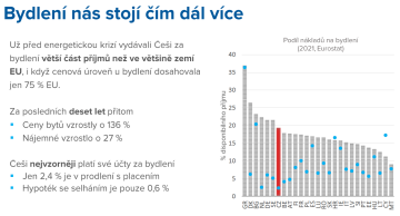 I když je nájem výraznou položkou domácího rozpočtu, pro téměř 62 % nájemníků nepředstavuje ani třetinu výdajů. Výjimkou je Praha. Ani loňský rok nepřinesl výrazné zvýšení nájmu – 36 % nájemníků se cena nezvýšila vůbec, růst o pětinu a víc deklaroval jen každý desátý nájemník. „Je to dáno tím, že do stávajících smluv se nepromítlo zdražení, které vidíme u bytů v aktuální nabídce. Výraznější zdražení nastalo u energií, kde čtyřem lidem z deseti vzrostly ceny o 10–25 %, čtvrtině se tyto náklady zvýšily o více než 25 %,“ říká Petr Dufek, hlavní ekonom skupiny CREDITAS a dodává: „Náklady na bydlení tvoří výraznou položku v rodinném rozpočtu Čechů, přesto jsou v platbách hypoték, nájmů i služeb velmi zodpovědní – podle Eurostatu dokonce nejvíce disciplinovaní v rámci celé EU.“